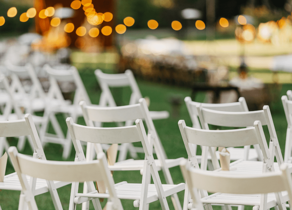 White folding chairs and resin chairs available to suit everything from casual gatherings to elegant weddings and formal eventsClean, Event-Ready Style