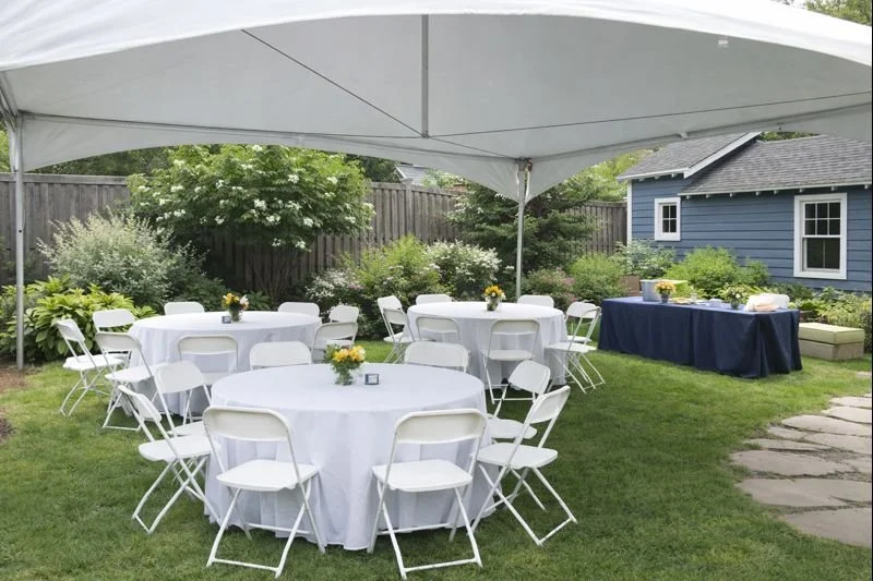 The package includes a tent, tables, and chairs. Delivery, setup and removal is included in the price, making this the easiest, most affordable backyard tent package in the Pacific Northwest area.