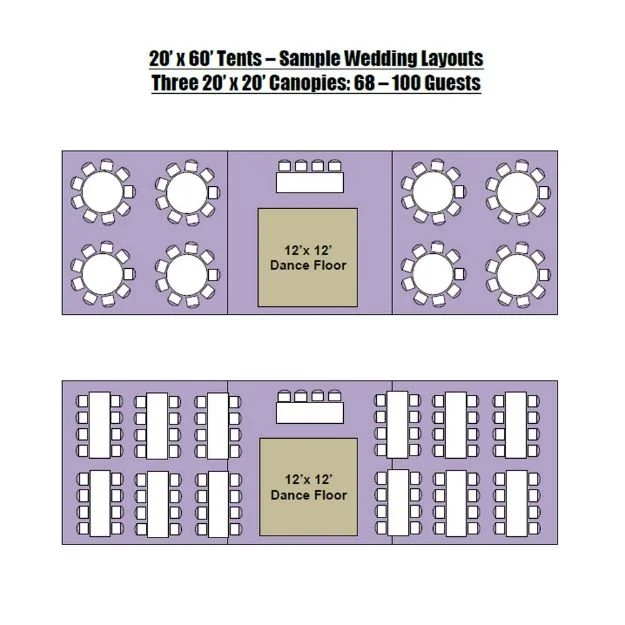 (12) 60” round tables or (16) 8ft Rectangle Tables (seat 8 comfortably)